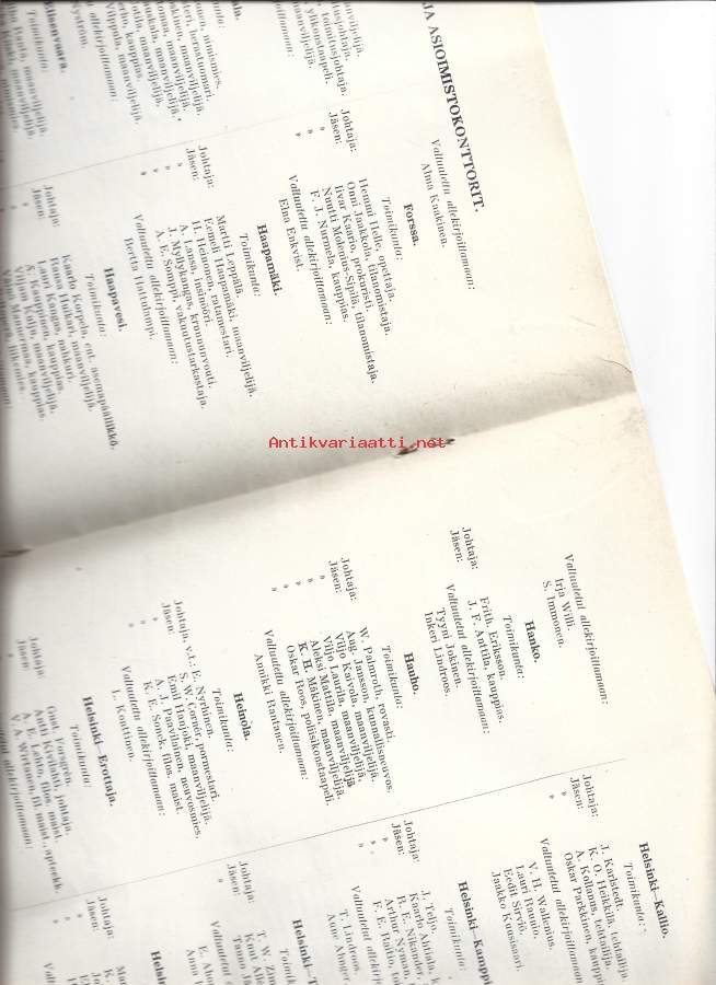 Kansallis-Osake-Pankki, vuosikertomus 1931 mm luettelot eri paikkakuntien konttorinjohtajista ja jäsenistä