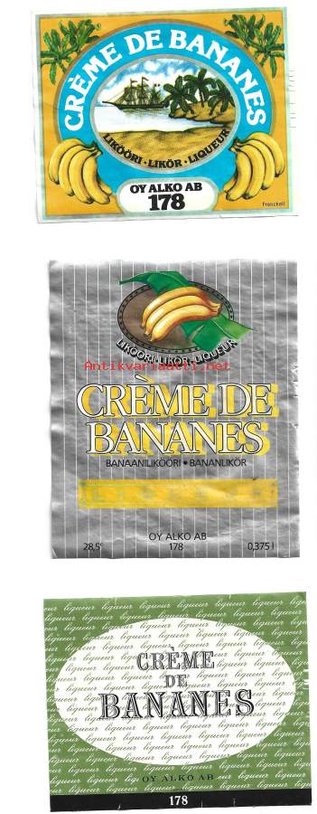 Creme de BananesAlko nr 178 - liköörietiketti viinaetiketti 3 eril