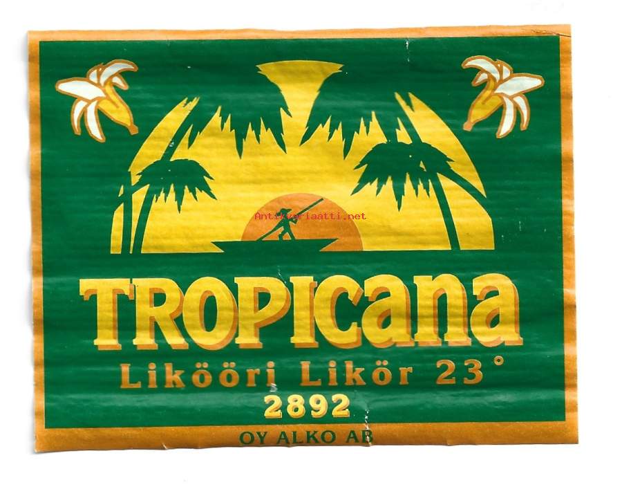 Tropicana nr 2892 iköörietiketti viinaetiketti 2 eril