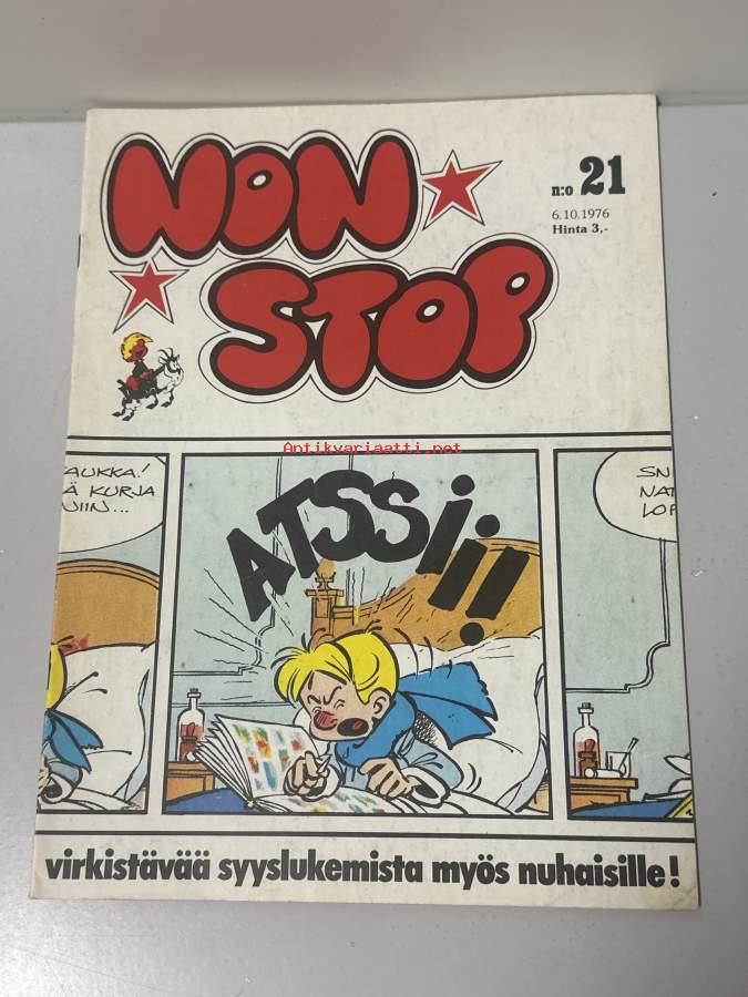 Non Stop 1975 nr 5 - Niilo Pielinen,Veikko ja Tette ja Jykke,Attila , Lucky Luke,Johannes ja Pirkale ja Strumffit, Sammy Day, Tintti Amerikassa.