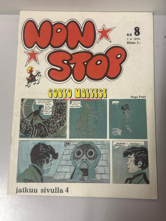 Non Stop 1977 nr 4 - Niilo Pielinen, Tintti, Corto Maltese, Veikko ja Tette ja Jykke, Piko ja Fantasio, Strumffaattori, Johannes ja Pirkale, Vili & Bill.