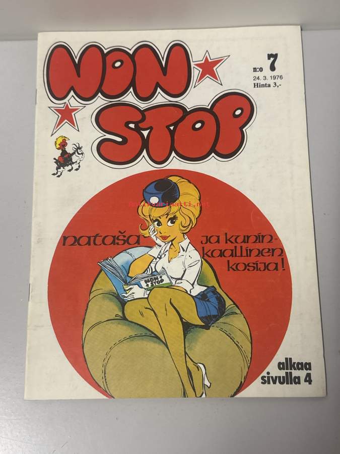 Non Stop 1977 nr 4 - Niilo Pielinen, Tintti, Corto Maltese, Veikko ja Tette ja Jykke, Piko ja Fantasio, Strumffaattori, Johannes ja Pirkale, Vili & Bill.
