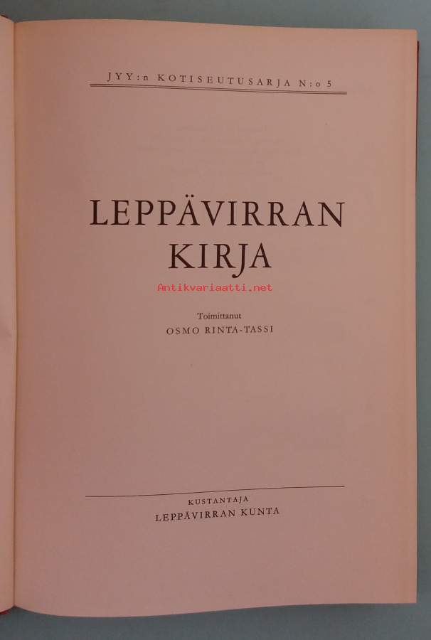Leppävirran kirja - JYY:n kotiseutusarja no: 5. (Paikkakuntahistoriikki)