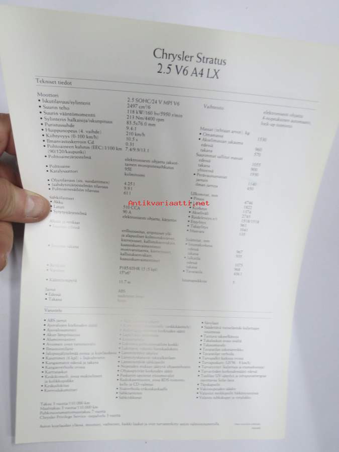 Chrysler Stratus 2.5 V6 A4 LX 1995 -myyntiesite