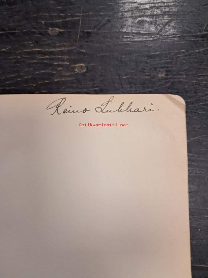 Reino Lukkarinn merkinnöillä oleva kirja.Aarne Reino Ilmari Lukkari oli Mannerheim-ristin ritari numero 67.