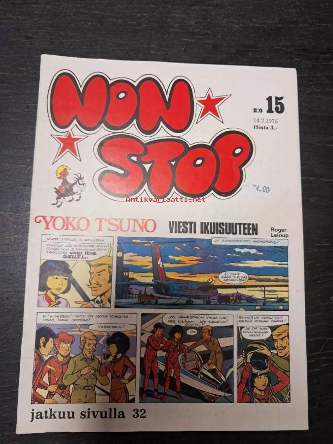 Non Stop 1977 nr 4 - Niilo Pielinen, Tintti, Corto Maltese, Veikko ja Tette ja Jykke, Piko ja Fantasio, Strumffaattori, Johannes ja Pirkale, Vili & Bill.