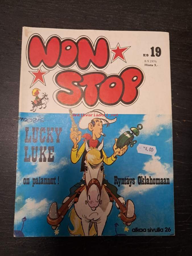 Non Stop 1975 nr 5 - Niilo Pielinen,Veikko ja Tette ja Jykke,Attila , Lucky Luke,Johannes ja Pirkale ja Strumffit, Sammy Day, Tintti Amerikassa.