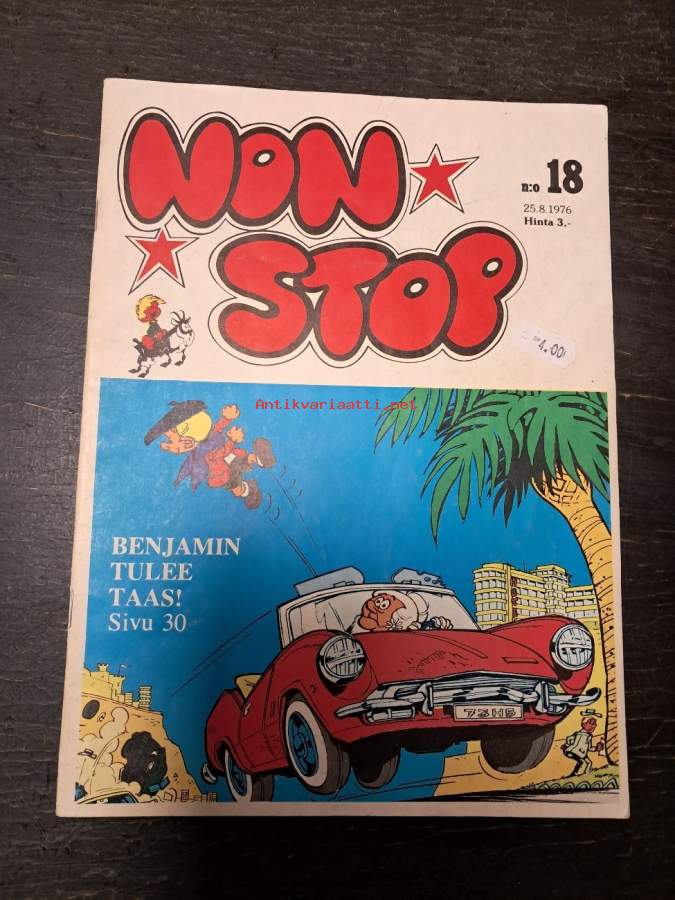 Non Stop 1977 nr 4 - Niilo Pielinen, Tintti, Corto Maltese, Veikko ja Tette ja Jykke, Piko ja Fantasio, Strumffaattori, Johannes ja Pirkale, Vili & Bill.