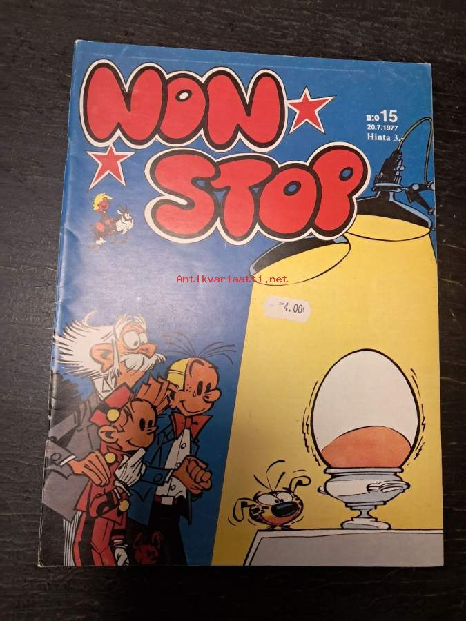 Non Stop 1977 nr 4 - Niilo Pielinen, Tintti, Corto Maltese, Veikko ja Tette ja Jykke, Piko ja Fantasio, Strumffaattori, Johannes ja Pirkale, Vili & Bill.