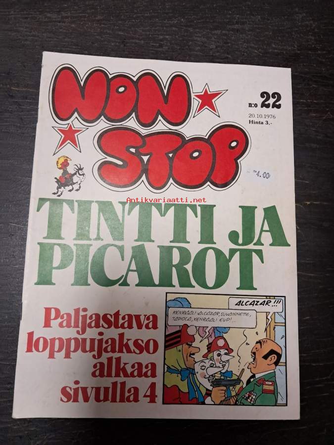 Non Stop 1977 nr 4 - Niilo Pielinen, Tintti, Corto Maltese, Veikko ja Tette ja Jykke, Piko ja Fantasio, Strumffaattori, Johannes ja Pirkale, Vili & Bill.