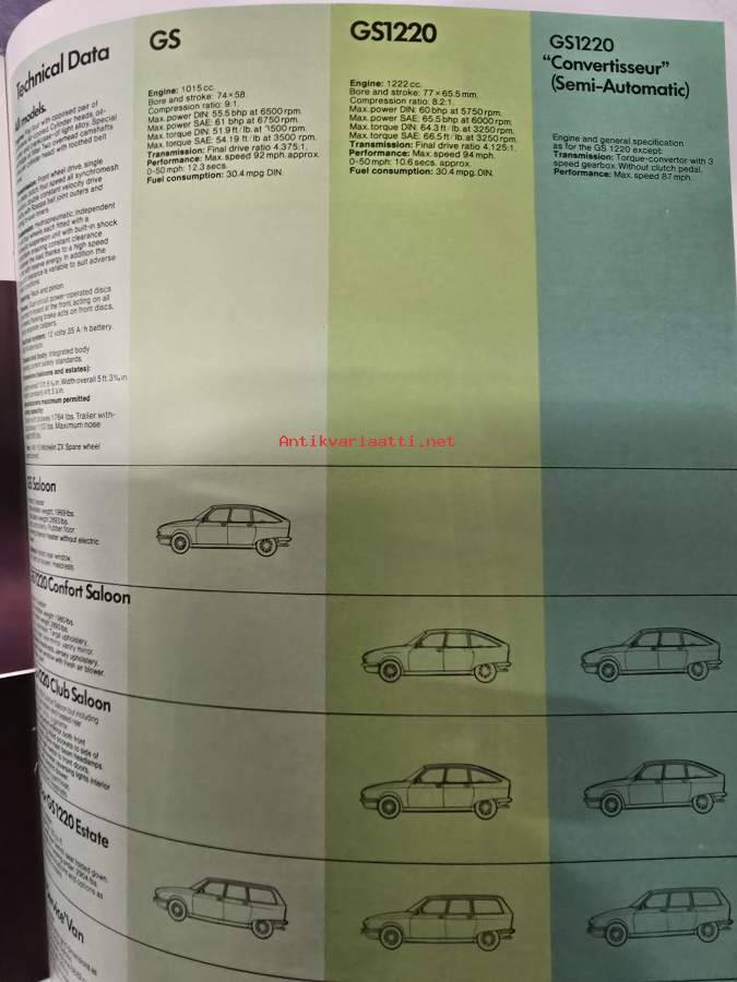Citroën GS -myyntiesite / sales brochure