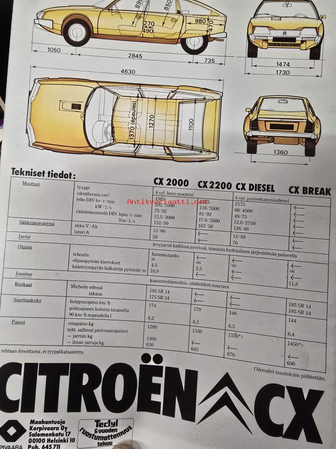 Sis mallit CX 2000, CX 2400, CX diesel ja CX break. Aukeaa kolmeksi sivuksi.