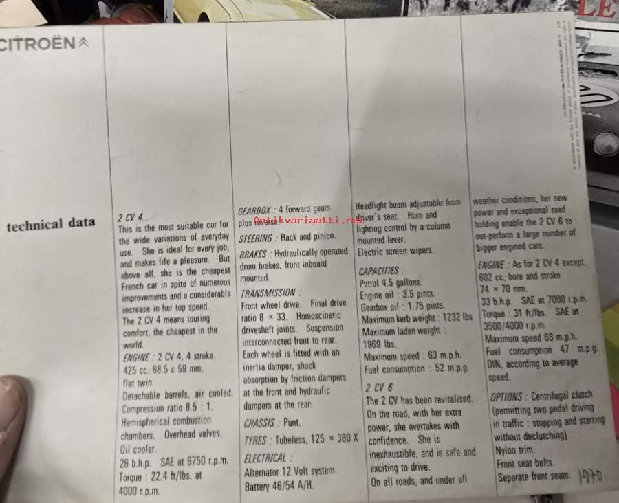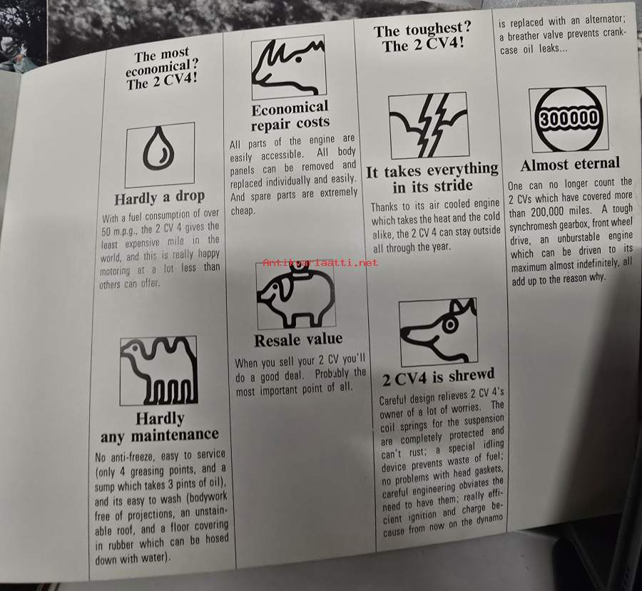 Citroën 2CV 1972 -myyntiesite / sales brochure