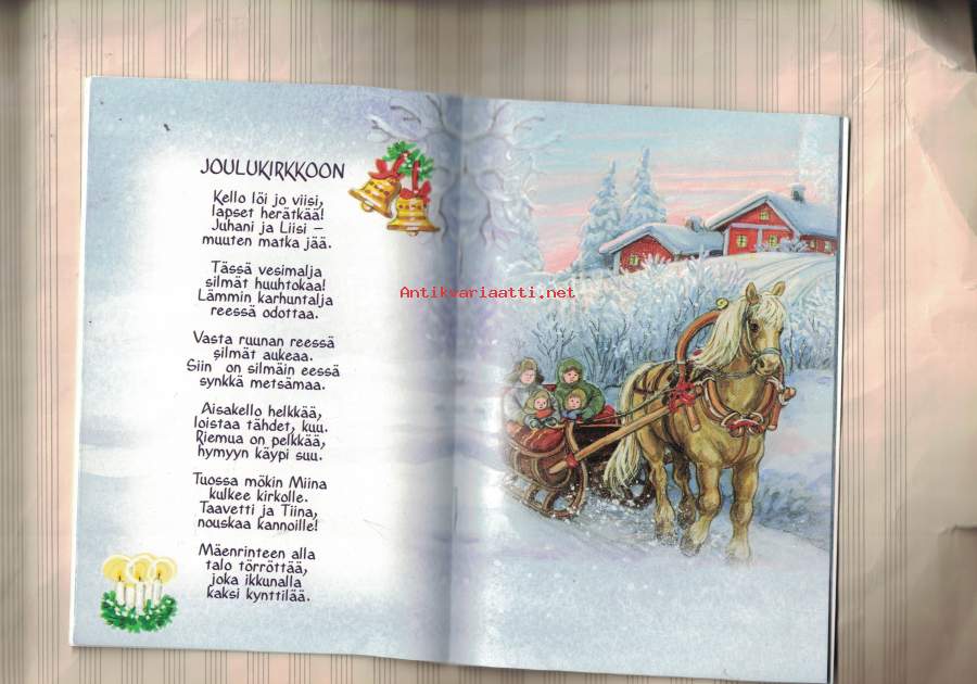Sanoja jouluksi. Tähän kirjaan on koottu tietoja joulusta; koristeista, tontuista, jouluherkuista, leikeistä. joulu avautuu uudella tavalla, kun tutustumme