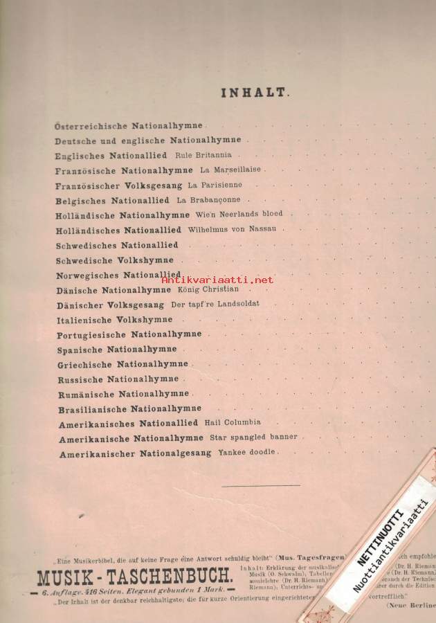 Nationalhymnen für Pianoforte, bearbeitet von Bernh. Wolff.