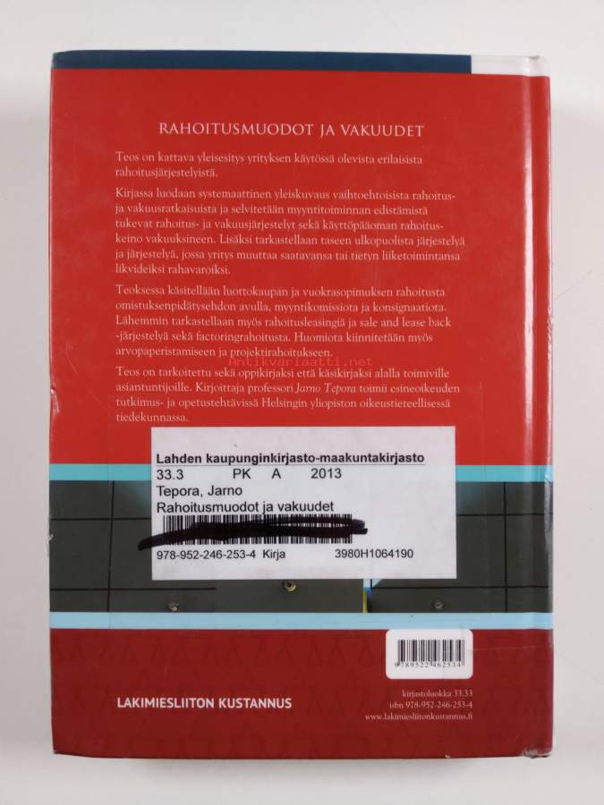 Merkinnät: omistajamerkintä (leima)Asiasanat: yritykset, lainsäädäntö, omistuksenpidätys, osamaksukauppa, leasing, myynti, turvallisuus, projektit, riskit, yhtiöt, rahoitus, vuokrasopimukset, vakuudet, esineoikeus, factoring, saatavat, pantit, luottokauppa, komissio