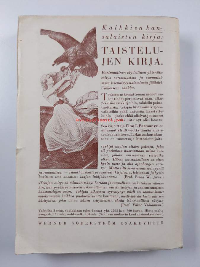 Hyvä. Tarkempi kuntoluokka: K3- ; Hieman kulumaa, pienoista repeämää reunoilla ja kulmissa, selkämyksessä hieman vinoutta, selkämyksessä lukutaittumaa