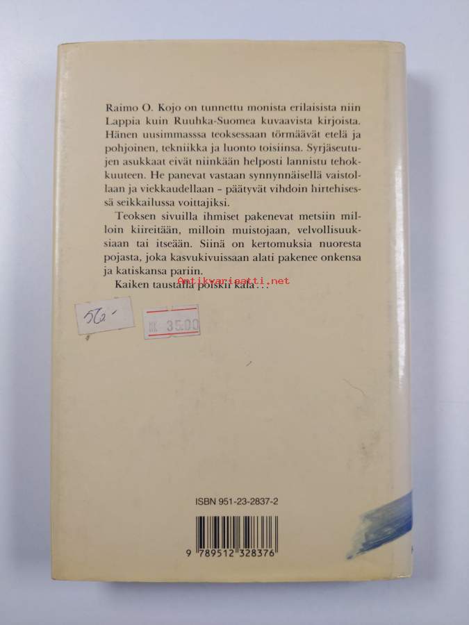 Hyvä. Hieman kolhua selkämyksen päissä, takana vanhoja hintalappuja, selkämyksessä hieman vinoutta. Kansipaperin kunto: pienoista käytön jälkeä