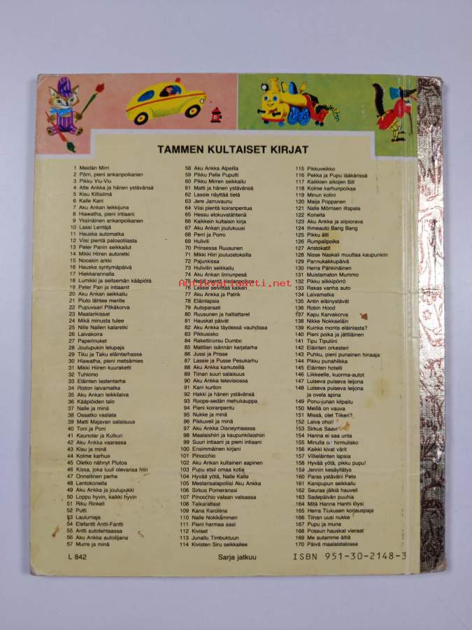 Hyvä. Tarkempi kuntoluokka: K3- ; Pientä kulumaa kansissa, pienoista repeämää selkämyksessä
