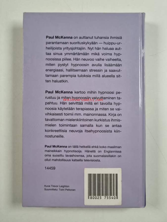 Muu(t) tekijä(t): Jaana (suom.) LahtinenMerkinnät: omistajamerkintäAlkuteos: The Hypnotic World of Paul McKennaAsiasanat: hypnoosi, suggestio, hypnoterapia