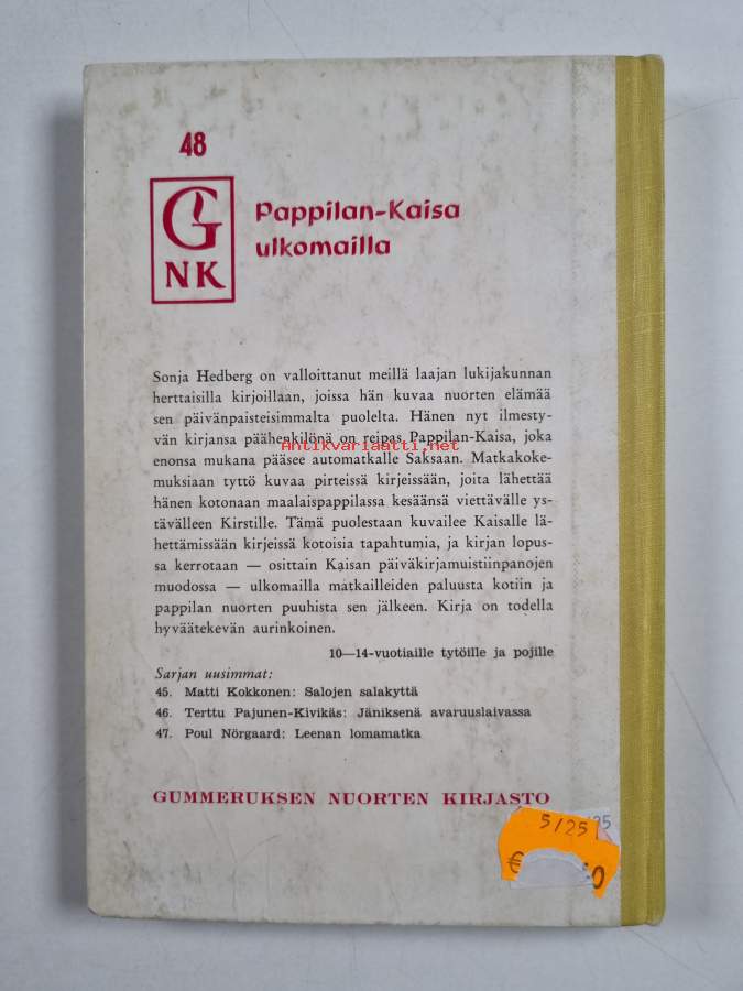 Muu(t) tekijä(t): Eero PerkiöMerkinnät: omistajamerkintäSarja: Gummeruksen nuorten kirjasto 48Alkuteos: Prästgårds-Kajsa reser utomlands