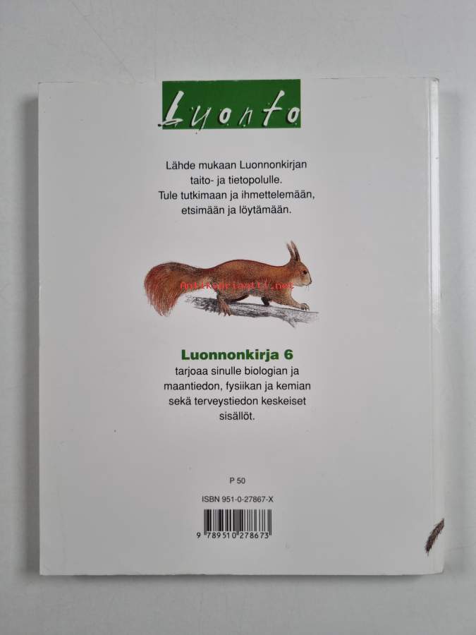 Muu(t) tekijä(t): Johanna HonkanenSarja: Luonnonkirja 6; LuontoAsiasanat: kemia, Venäjä, biologia, kierrätys, Japani, Intia, maantieto, metsät, fysiikka, vesiensuojelu, ympäristökasvatus, kiina, ilmansuojelu, jätteet, Australia, Aasia, Lähi-Itä, Yhdysvallat, afrikka, brasilia