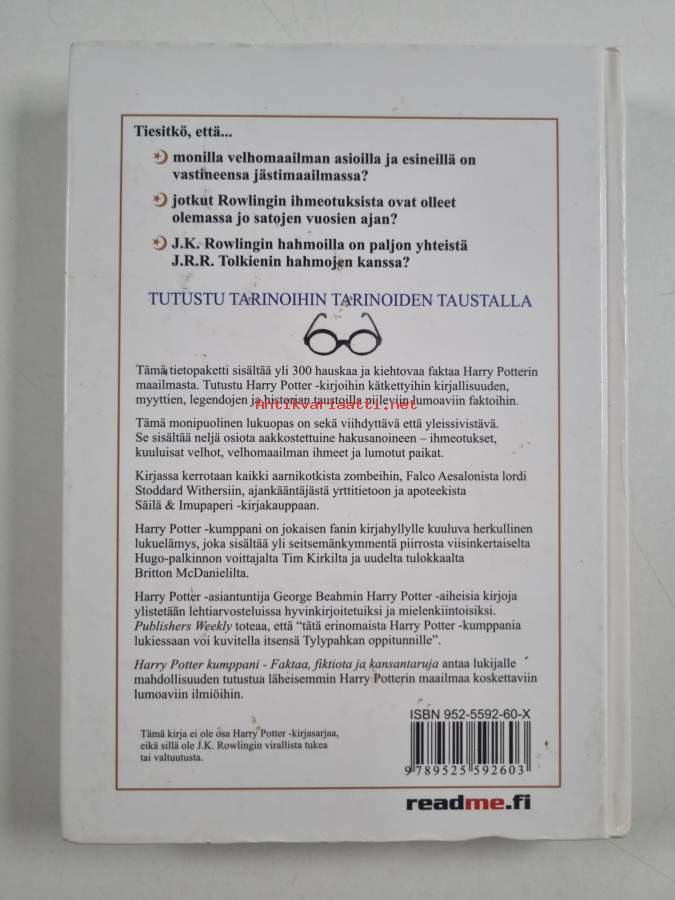 Muu(t) tekijä(t): Sini BonkeAlkuteos: Fact, fiction, and folklore in Harry Potter's worldAsiasanat: lastenkirjallisuus, kaunokirjallisuus, hakuteokset, fantasiakirjallisuus