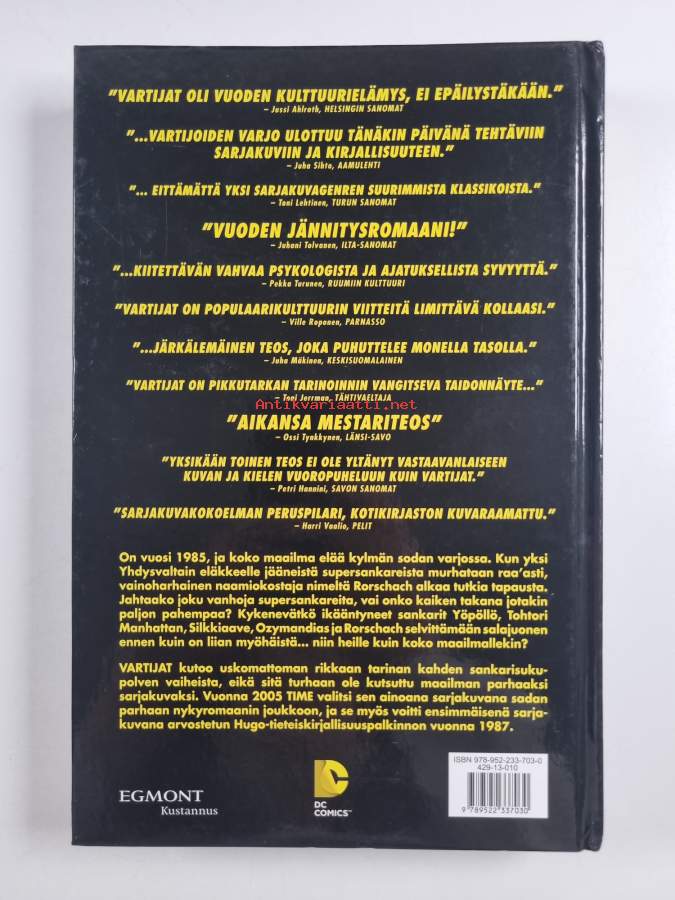 Muu(t) tekijä(t): Jouko Ruokosenmäki, Dave GibbonsAlkuteos: WatchmenAsiasanat: suurkaupungit, kirjallisuuspalkinnot, sarjakuvaromaanit, antisankarit, supersankarit, supersankarisarjakuvat, jännityssarjakuvat