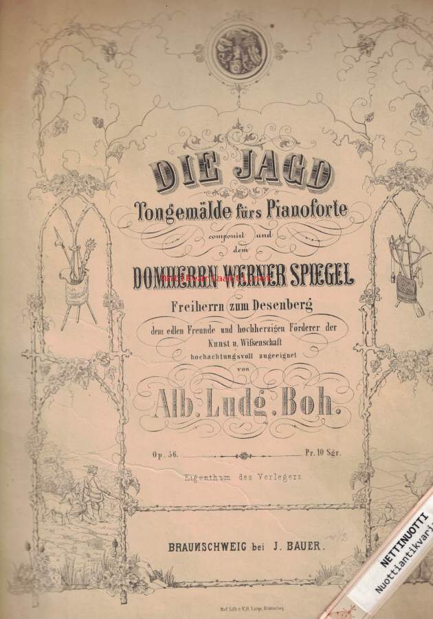 Componirt und den Domherrn Werner Spiegel Freiherrn zum Desenberg dem edlen Freunde und hochherzigen Förderer der Kunst u. Wifsenschaft hochachtungsvoll zegeeignet von Alb. Ludg. Boh. -Postipaketti