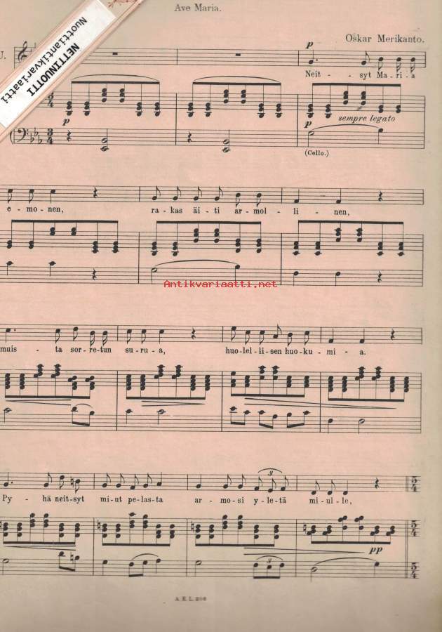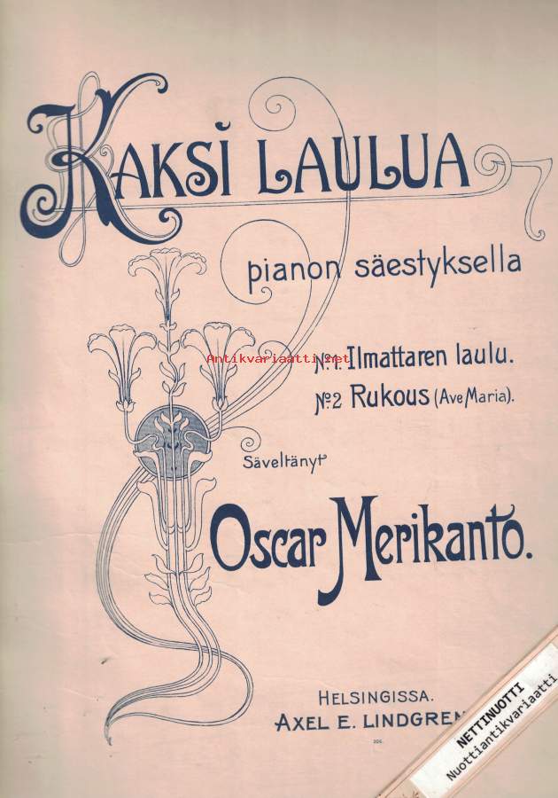 Kaksi nlaulua pianon säestyksellä: No1 Ilmattaren laulu, No2 Rukous (Ave Maria)