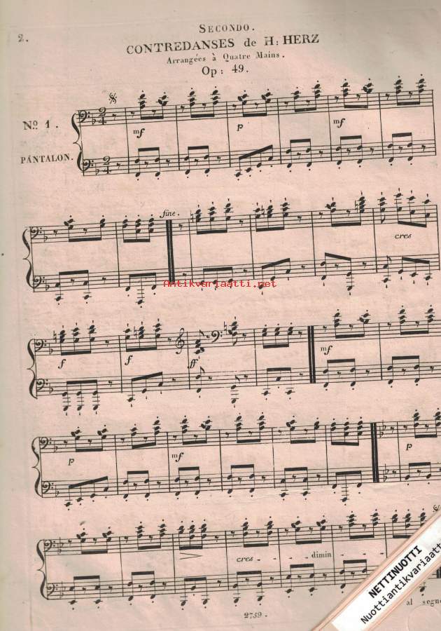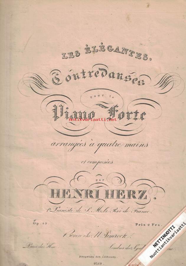Les élégantes CONTREDANSES : pour le piano forté arrangées à quatre mains et co,posées par Henri Herz, Op. 49,