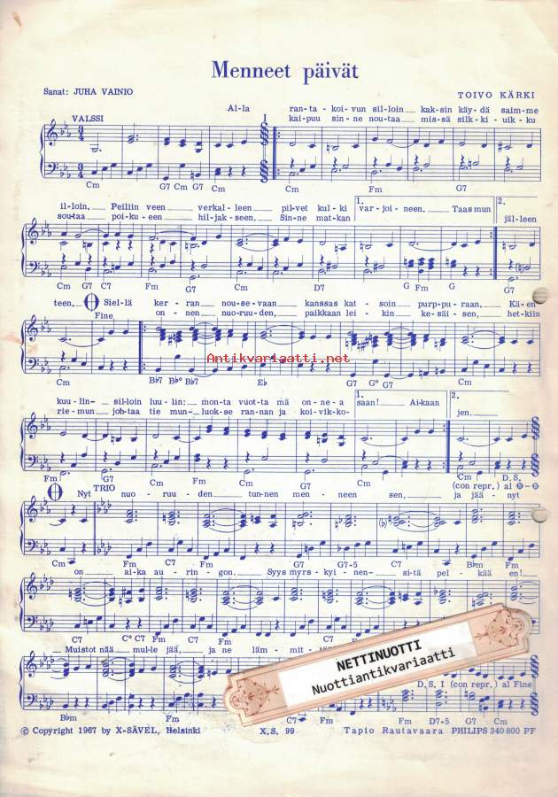 Viime kesänä - Arotuuli - Menneet päivät, Toivo Kärki kolmoisnuotti