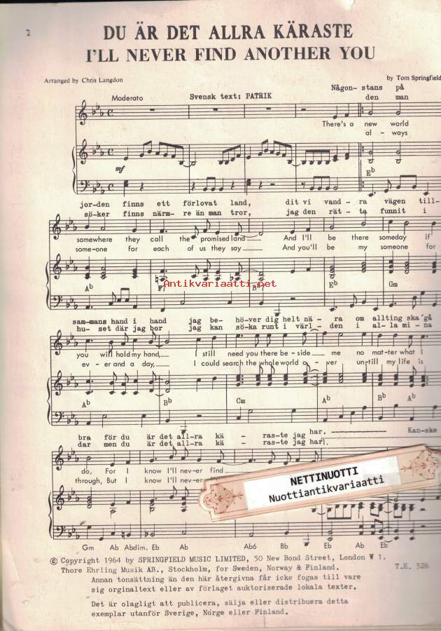 Laulu + piano, sointumerkit. -Postitus: 3,80€