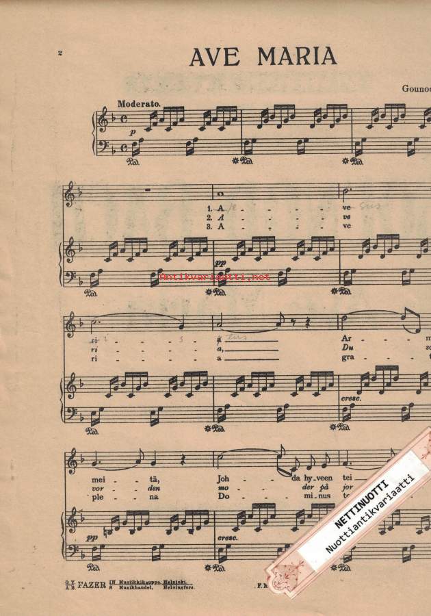 Kaksi laulua pianon säestyksellä: No1 Ilmattaren laulu, No2 Rukous (Ave Maria)