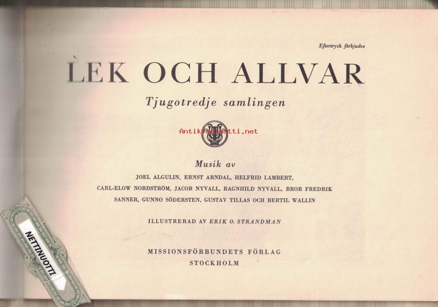 Tjugotredje samlingen. Sis. 15 laulua ja kuvasivua.-Suuri Helposti kuori
