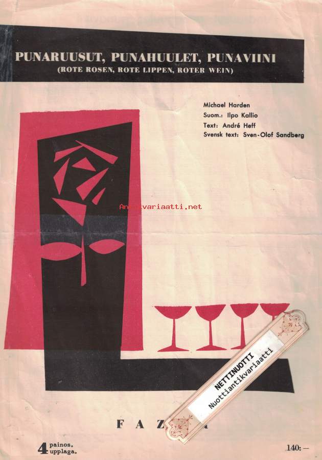 Punaruusut, punahuulet, punaviini (Rote Rosen, rote Lippen , roter Wein, Röda rosor, röda läppar, purpurvin )