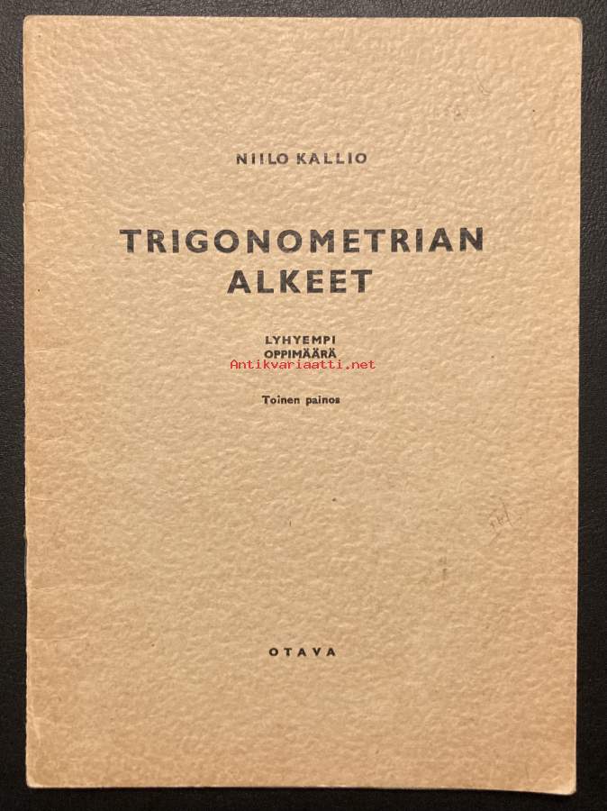 Trigonometrian alkeet : lyhyempi oppimääräKirjaKallio, NiiloOtava 1960.