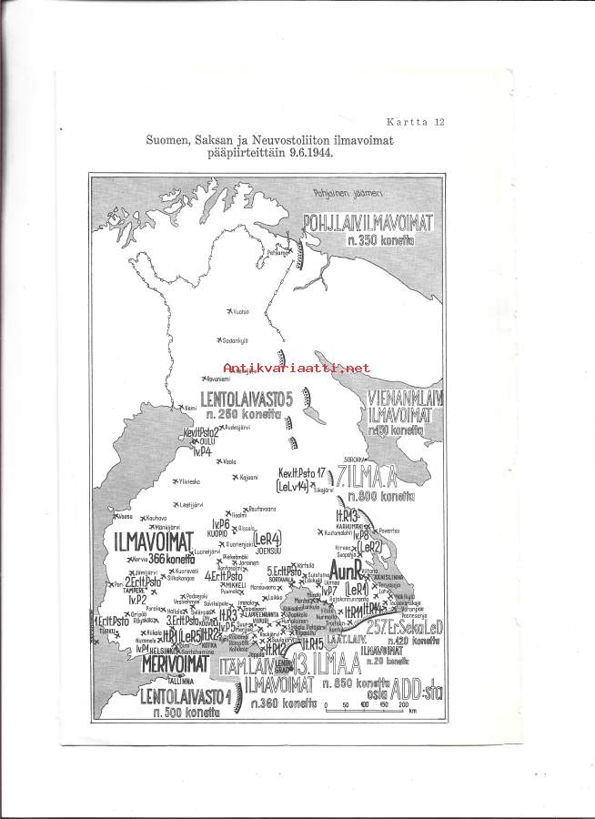 Suomen, Saksan ja Neuvostoliiton Ilmavoimat pääpiirteittäin 9.6.1944 kartta