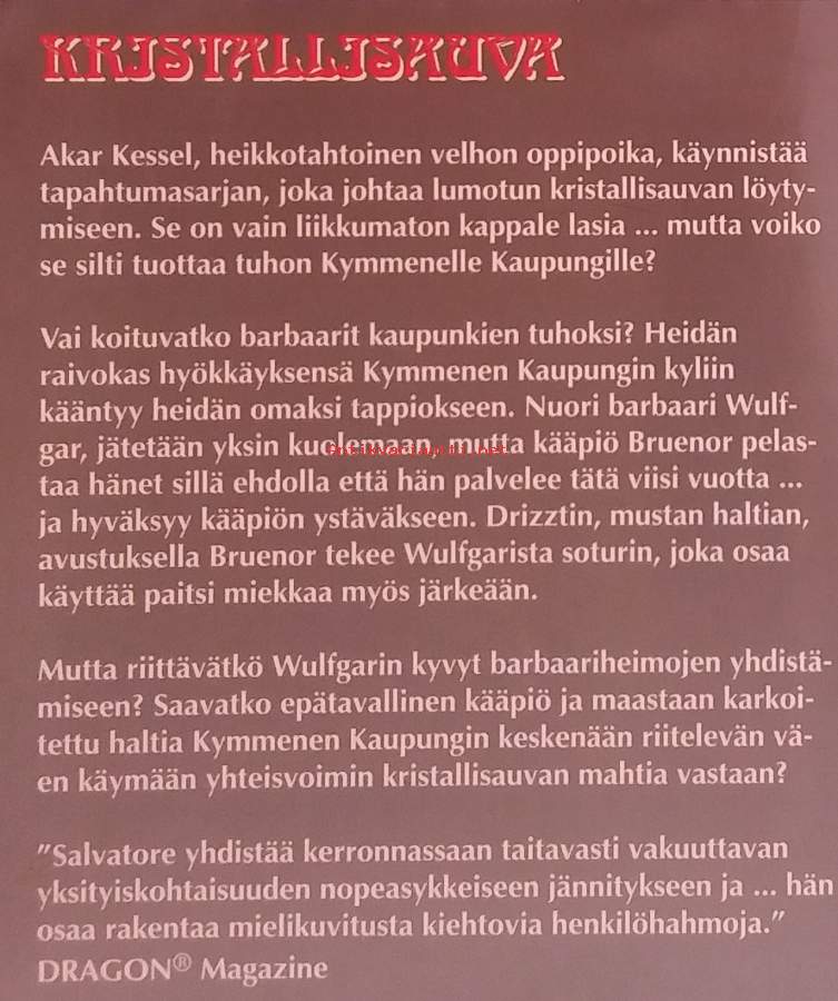 Tarina sijoittuu Jäätuulen laaksoon, syrjäiseen ja armottomaan pohjoiseen alueeseen, jossa Kymmenen Kaupungin asukkaat yrittävät selviytyä luonnon ja vihollisten puristuksessa. Dimensiot 18 ¤ 13 cm