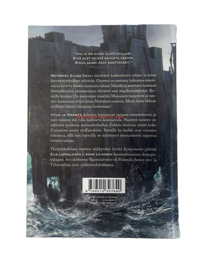Yksityiskohtiaan myöten säihkyväksi hiottu Konejumalatt päättää Eija Lappalaisen ja Anne Leinosen kunnianhimoisen dystopia trilogian. Sen aloitusosa Routasisarukset olo Finlandia Junior 2011- ja Tähtivaeltajia 2012- palkintoehdokkaana