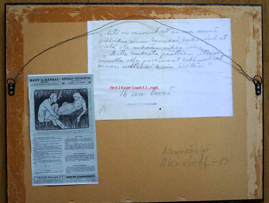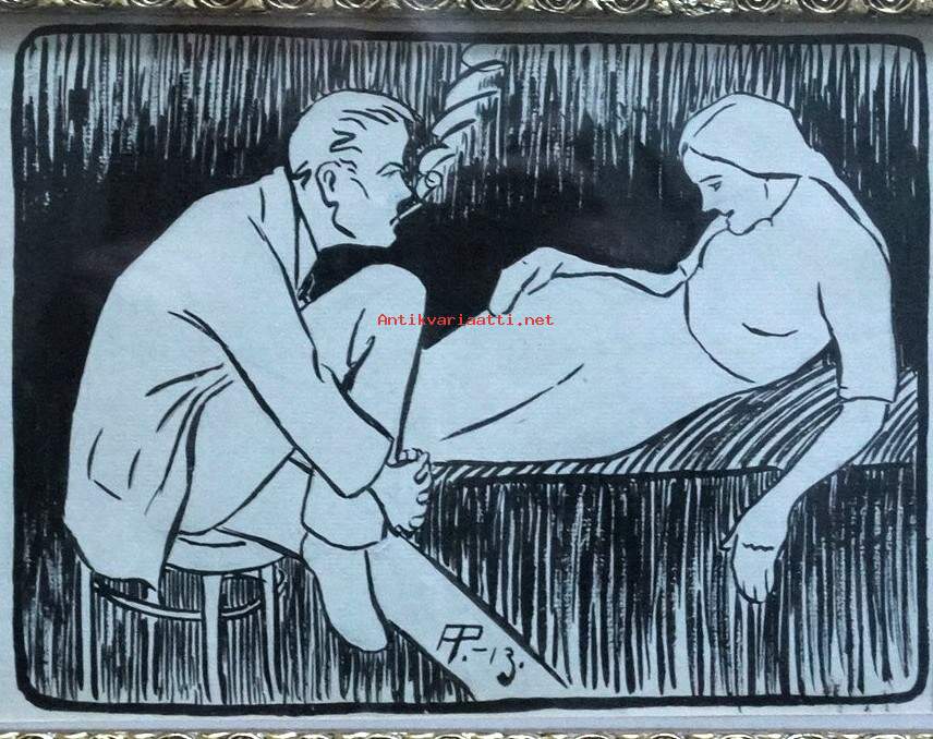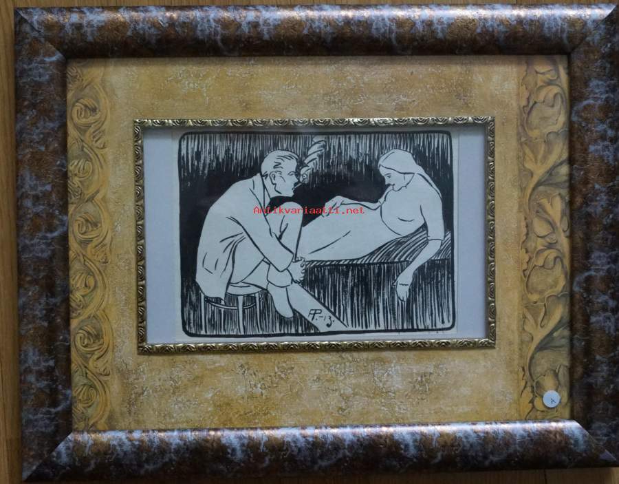 Alexander Paischeff, "Kosinta " tussipiirros sign AP-13 ,36x45 cm kehystetty alkuperäispiirros