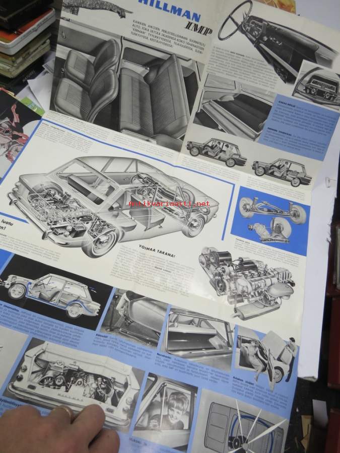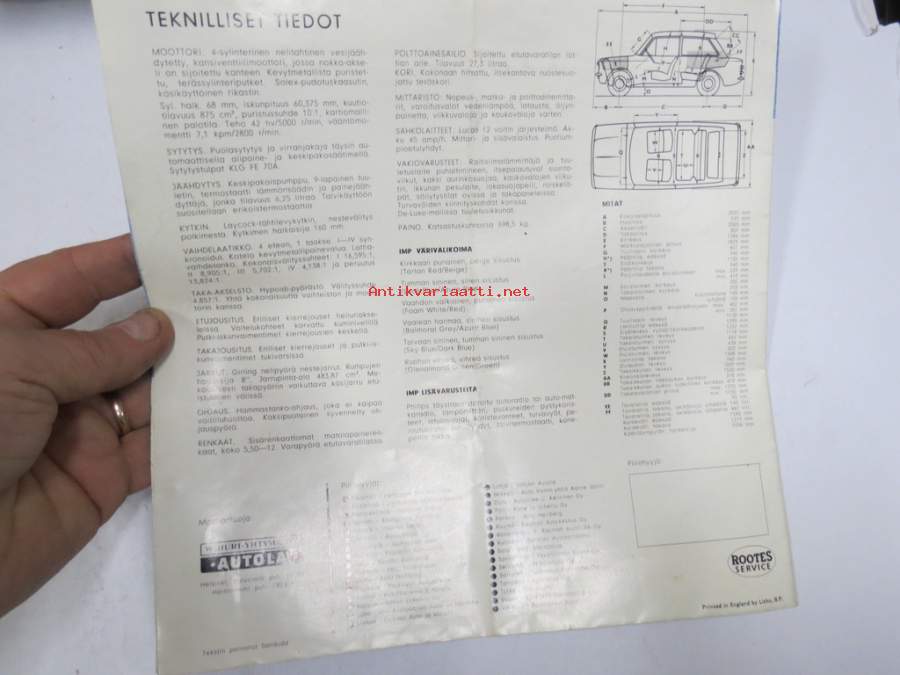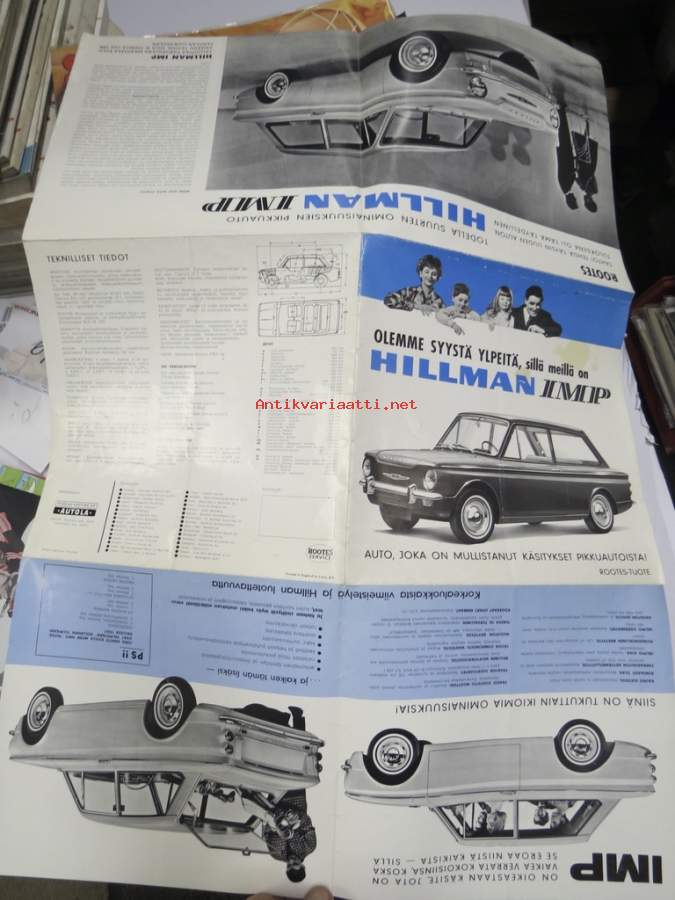 HILLMAN -minx de luxe saloon, -station wagon, -husky ja SUNBEAM rapier -myyntiesite. AUTOLA Oy