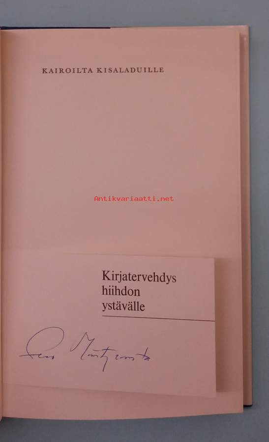 Erinomainen. Mäntyrannan signeeraus kirjatervehdys-korttiin kirjoitettuna