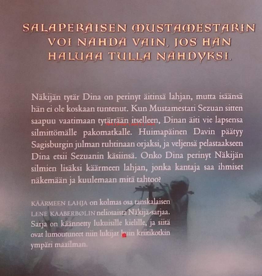 Dina, näkijän lahjan perinyt nuori tyttö, kohtaa vihdoin salaperäisen isänsä – Mustamestari Sezuanin, pelätyn manipuloijan ja valehtelijan... Dimensiot 21 ¤ 14 cm.