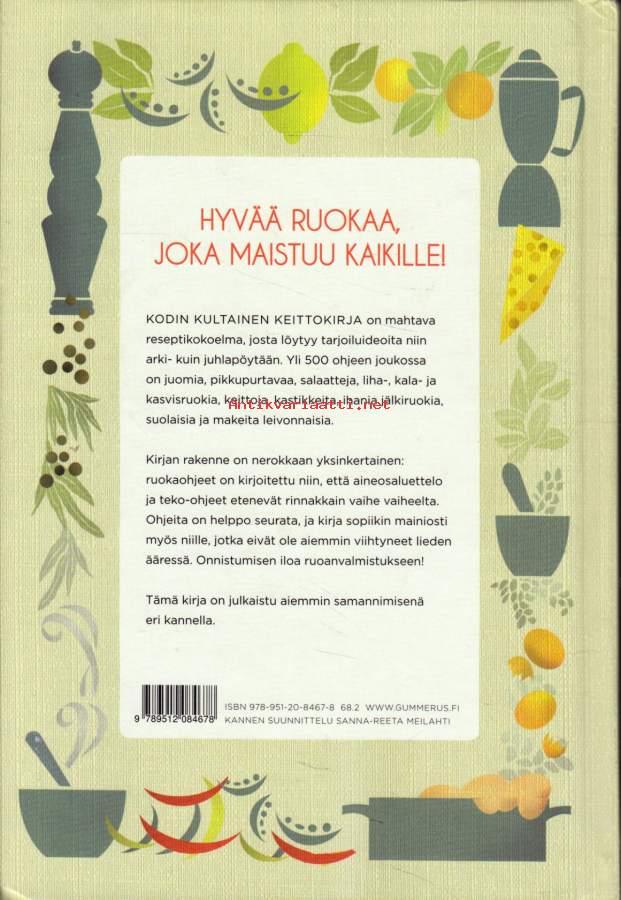 **Kodin kultainen keittokirja on mahtava reseptikokoelma, josta löytyy tarjoiluideoita niin arki- kuin juhlapöytään. Yli 500 ohjeen joukossa on juomia, pikkupurtavaa, salaatteja, liha-, kala- ja kasvisruokia, keittoja, kastikkeita, ihania jälkiruokia, suolaisia ja makeita leivonnaisia.**Kirjan rakenne on nerokkaan yksinkertainen: ruokaohjeet on kirjoitettu niin, että aineosaluettelo ja teko-ohjeet etenevät rinnakkain vaihe vaiheelta. Ohjeita on helppo seurata, ja kirja sopiikin mainiosti myös niille, jotka eivät ole aiemmin viihtyneet lieden ääressä. Onnistumiseniloa ruoanvalmistukseen!**