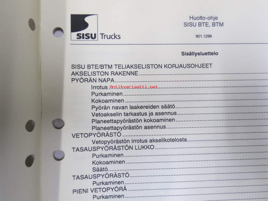 Sisu kuorma-autot - Huolto-ohje - BTE Taka-akseli / BTM Taaempi teliakseli -korjaamokirjasarjan osa