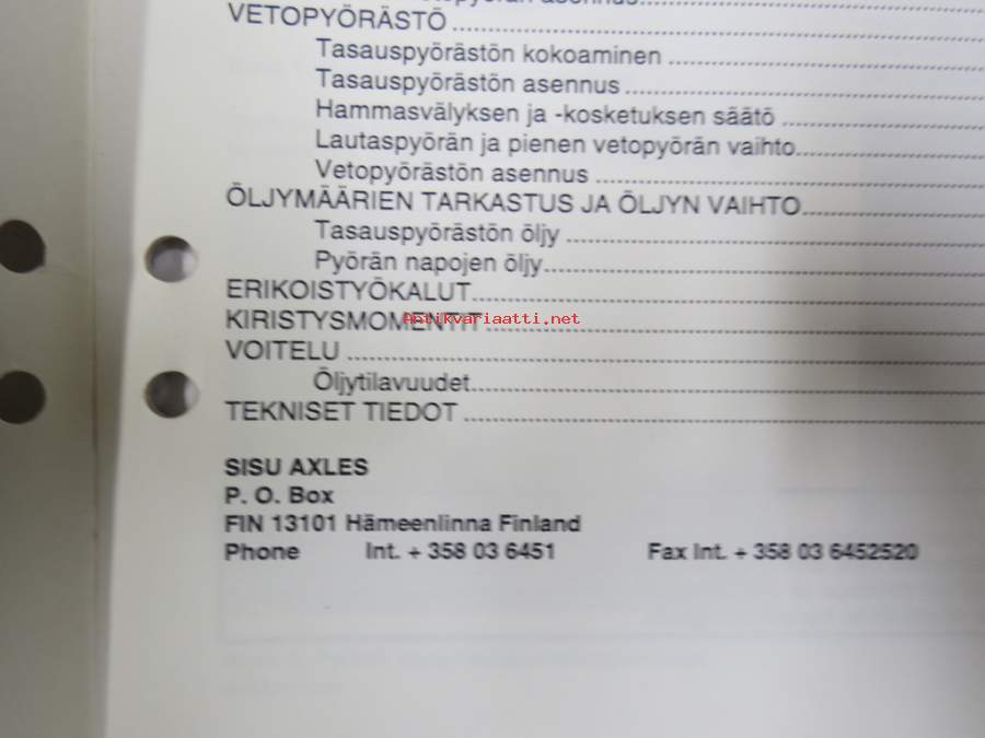 Sisu kuorma-autot - Huolto-ohje - Vetopyöräsatö DP--265 -korjaamokirjasarjan osa