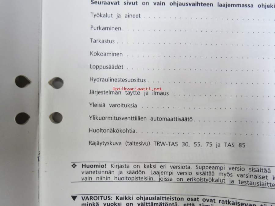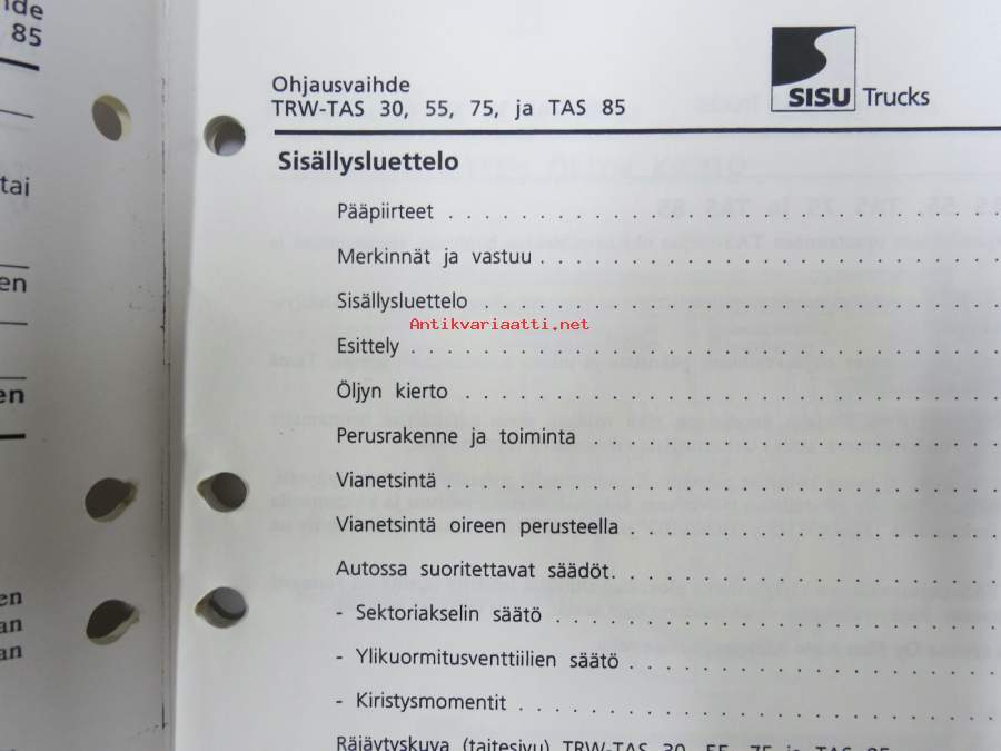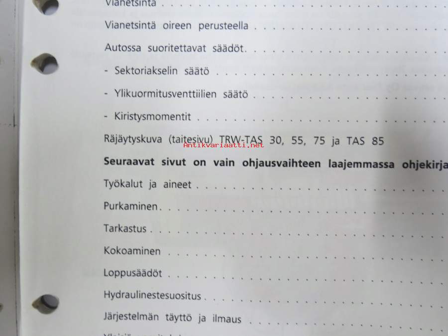 Sisu kuorma-autot - Huolto-ohje - Ohjausvaihde TRW TAS 30, 55, 75, 85 -korjaamokirjasarjan osa