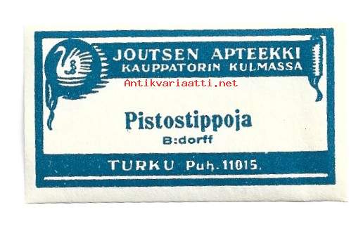 Joutsen Apteekki / Pistostippoja B:dorff - apteekkietiketti 3 kpl erä