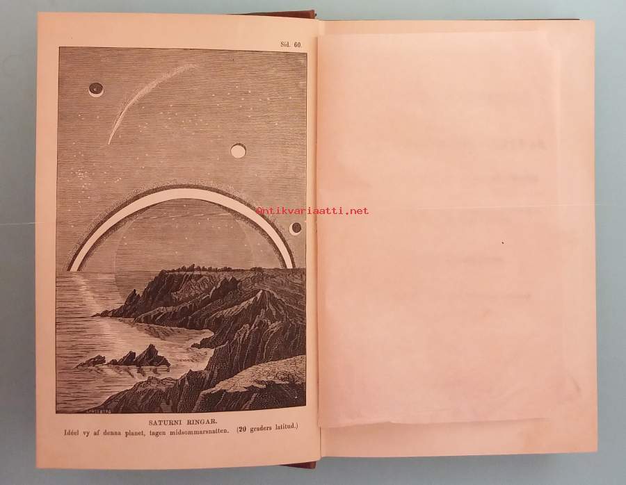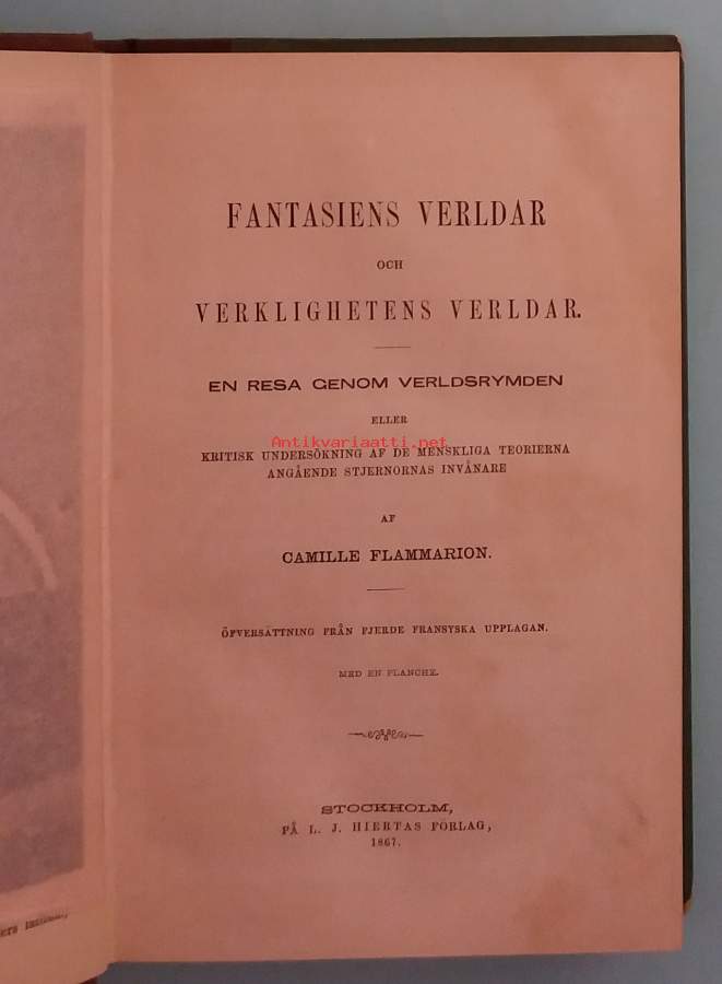 Teos on kriittinen tutkimus ihmiskunnan teorioista tähtien asukkaista, esitetty kuvitteellisen avaruusmatkan muodossa. Dimensiot 18 ¤ 12 cm + yksi kuva (teräspiirros?) . Lisäksi niteeseen sidottuna 4 sivuinen Hypatia, eller nu som Fordom. Historisk berättelse af Charles Kingsley. På I.J. Hiertas förlag v. 1867. HUOM Etusivulla leima: poistokappale, ei muita merkintöjä. Verket är en kritisk undersökning av mänsklighetens teorier om stjärnornas invånare, framställd i form av en fiktiv rymdresa. Dimensioner 18 × 12 cm, med en illustration (möjligen stålgravyr). Därtill är i volymen inbundet ett fyrsidigt häfte: Hypatia, eller nu som fordom. Historisk berättelse af Charles Kingsley. Utgiven på I. J. Hiertas förlag år 1867. OBS: På titelbladet finns en stämpel ”poistokappale”, men inga andra anteckningar